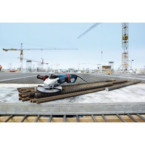 Winkelschleifer GWS 24-230 LVI, Der kabelgebundene große Winkelschleifer GWS 24-230 LVI Professional aus der 2.400-Watt-Klasse liefert ausdauernde Schleifleistung und hohen Anwenderschutz. Außerdem sorgt sein kraftvoller 2.400-Watt-Motor für gute Ergebnisse bei anspruchsvollen Arbeiten. Der Schutz für den Anwender ist hier dank KickBack Control und Wiederanlaufschutz des Schleifers besonders hoch. Das Gerät verfügt über einen Haupthandgriff mit Vibration Control und einen Zusatzgriff mit Vibration Control, wodurch bis zu 50 % der Vibration absorbiert werden. Dieses Elektrowerkzeug wurde zum Trennen und Schleifen von Metall, Fliesen und Mauerwerk konzipiert. Das Gerät ist mit der Absaughaube GDE 230 FC-T Professional kompatibel. Der GWS 24-230 LVI Professional verfügt auch über eine Schutzhaube. Aufnahmeflansch (1 605 703 099); Spannmutter (1 603 340 040); Schnellverstellbare Schutzhaube (2 605 510 281); Tri-Control-Schalter; Zweilochschlüssel (1 607 950 048); Zusatzhandgriff Vibration Control (2 602 025 181)