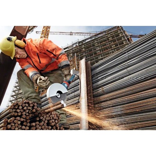 Winkelschleifer GWS 26-230 LVI, Der kabelgebundene große Winkelschleifer GWS 26-230 LVI Professional aus der 2.600-Watt-Klasse gewährleistet bei der Arbeit die stärkste verfügbare Leistung und hohen Anwenderschutz. Sein beeindruckender 2.600-Watt-Motor sorgt auch bei sehr anspruchsvollen Arbeiten für hervorragende Ergebnisse. Der Schutz für den Anwender ist hier dank KickBack Control und Wiederanlaufschutz des Schleifers besonders hoch. Außerdem absorbieren Haupthandgriff mit Vibration Control und Zusatzgriff mit Vibration Control bis zu 50 % der Vibration. Dieses Elektrowerkzeug wurde zum Trennen und Schleifen von Metall, Fliesen und Mauerwerk konzipiert. Das Gerät ist sowohl mit der Absaughaube GDE 230 FC-T Professional als auch dem Bosch Click & Clean System kompatibel. Der GWS 26-230 LVI Professional verfügt auch über eine Schutzhaube. Aufnahmeflansch (1 605 703 099); Schnellverstellbare Schutzhaube (2 605 510 281); Schnellspannmutter SDS (1 603 340 031); Zweilochschlüssel (1 607 950 048); Zusatzhandgriff Vibration Control (2 602 025 181)