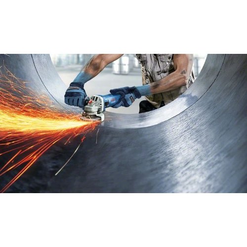Winkelschleifer GWS 9-125 S. Der kleine Winkelschleifer GWS 9-125 S Professional bietet einen starken Motor, Drehzahlvorwahl und optimale Werkzeugkontrolle. Sein starker 900-Watt-Motor sorgt für einen schnellen Arbeitsfortschritt. Dieser kleine Winkelschleifer bietet mit seinem schlanken Griffumfang und seinem ergonomischen Design eine optimale Werkzeugkontrolle. Außerdem sorgt seine Drehzahlvorwahl für perfekte Arbeitsergebnisse bei verschiedenen Materialien. Der GWS 9-125 S wurde zum Trennen und Schleifen von Metall, Fliesen und Mauerwerk konzipiert. Er ist kompatibel mit der Absaughaube GDE 125 EA-T Professional. Der GWS 9-125 S Professional verfügt auch über eine Schutzhaube und einen Wiederanlaufschutz. Im Lieferumfang enthalten: Aufnahmeflansch, Karton, Schutzhaube, Spannmutter, Zusatzhandgriff, Zweilochschlüssel