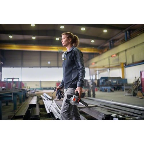 Der neue kleine Winkelschleifer bietet auch Drehzahlvorwahl, eine konstante Drehzahl, Sanftanlauf und Überlastschutz.