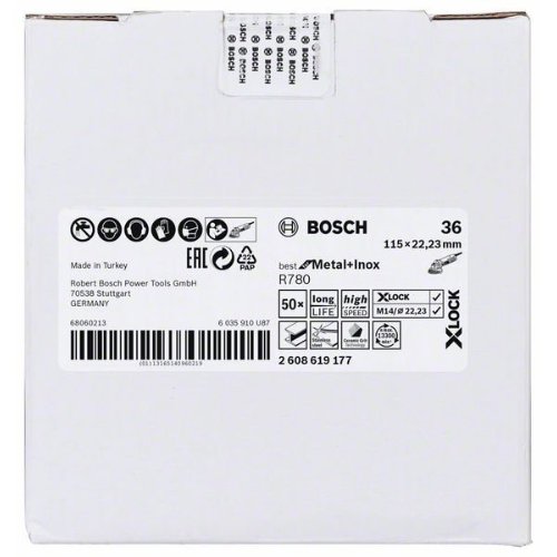 Die X-LOCK Fiberscheibe R780 Best for Metal + Inox trägt beim Schleifen von Metall- und Inox-Oberflächen ausgesprochen schnell Material ab. Die selbstnachschärfende Keramik-Korn-Technologie erzeugt beim Schleifen neue scharfe Schneidekanten für eine hohe Abtragsrate bei gröberem Korn und eine konsistente Oberflächenqualität bei feinerem Korn ohne Scheibenverschleiß. Die Scheibe verfügt über eine Beschichtung mit Kühlmitteln, wodurch sie ideal für Inox sowie Baustahl geeignet ist. Das Trägermaterial ist Vulkanfiber, die Stabilität bei langen Arbeitseinsätzen gewährleistet. Dank schlüssellosem X-LOCK System lassen sich die Fiberscheiben schnell und bequem wechseln. Die Scheiben sind zum Aufspannen auf einen X-LOCK- oder Standard-Gummistützteller geeignet.