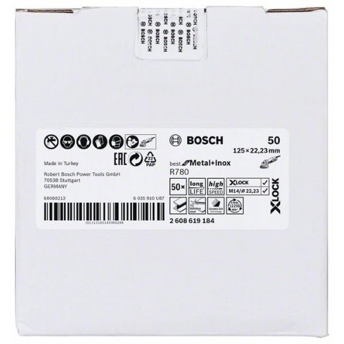 Mindestanzahl für die Bestellung von "Bosch X-LOCK Fiberscheibe, 125 mm, K 50, Sternloch, R780 Best for Metal + Inox, für kleine Winkelschleifer" ist 50.
