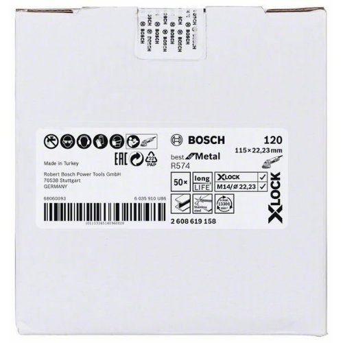 The X-LOCK Fiberschleifscheibe R574 Best for Metal sorgt für hohen Abtrag. Ihr robustes Zirkoniumkorn sorgt für hohen Abtrag bei grober Körnung und für gleichmäßige Oberflächenqualität bei feinerer Körnung. Die dicke und vulkanisierte Rückseite der Schleifscheibe sorgt für einen stabilen Schleifvorgang. Dank schlüssellosem X-LOCK System lassen sich die Fiberscheiben schnell und bequem wechseln. Die Scheiben sind zum Aufspannen auf einen X-LOCK- oder Standard-Gummistützteller geeignet.