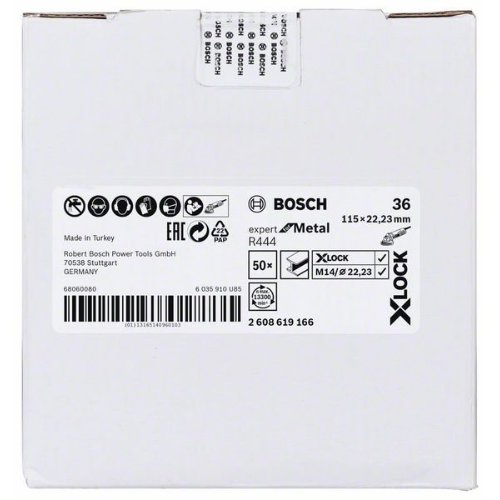 Die X-LOCK Fiberscheibe R444 Expert for Metal schafft auf Metalloberflächen einen beeindruckenden Oberflächenabschluss. Die stabile Trägerplatte aus Vulkanfiber ermöglicht einen gleichmäßigen Schleifvorgang. Das Schleifkorn aus Aluminiumoxid ist besonders gut für Arbeiten an Metall geeignet. Dank schlüssellosem X-LOCK System lassen sich die Fiberscheiben schnell und bequem wechseln. Die Scheiben sind zum Aufspannen auf einen X-LOCK- oder Standard-Gummistützteller geeignet.
