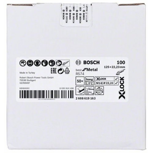 The X-LOCK Fiberschleifscheibe R574 Best for Metal sorgt für hohen Abtrag. Ihr robustes Zirkoniumkorn sorgt für hohen Abtrag bei grober Körnung und für gleichmäßige Oberflächenqualität bei feinerer Körnung. Die dicke und vulkanisierte Rückseite der Schleifscheibe sorgt für einen stabilen Schleifvorgang. Dank schlüssellosem X-LOCK System lassen sich die Fiberscheiben schnell und bequem wechseln. Die Scheiben sind zum Aufspannen auf einen X-LOCK- oder Standard-Gummistützteller geeignet.