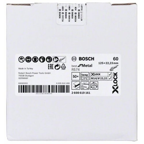 The X-LOCK Fiberschleifscheibe R574 Best for Metal sorgt für hohen Abtrag. Ihr robustes Zirkoniumkorn sorgt für hohen Abtrag bei grober Körnung und für gleichmäßige Oberflächenqualität bei feinerer Körnung. Die dicke und vulkanisierte Rückseite der Schleifscheibe sorgt für einen stabilen Schleifvorgang. Dank schlüssellosem X-LOCK System lassen sich die Fiberscheiben schnell und bequem wechseln. Die Scheiben sind zum Aufspannen auf einen X-LOCK- oder Standard-Gummistützteller geeignet.