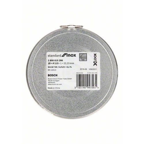 Die X-LOCK Trennscheibe Standard for Inox sorgt für zuverlässige Eigenschaften in Stahl. Die schmale Schneide der Scheibe sorgt für glatte Schnitte ohne großen Kraftaufwand. Zudem ist die Scheibe frei von Eisen, Schwefel und chlorierten Füllstoffen. Trennscheiben von Bosch erfüllen die höchsten Sicherheitsanforderungen wie EN 12413. Dank schlüssellosem X-LOCK System lassen sich die Trennscheiben schnell und bequem wechseln.