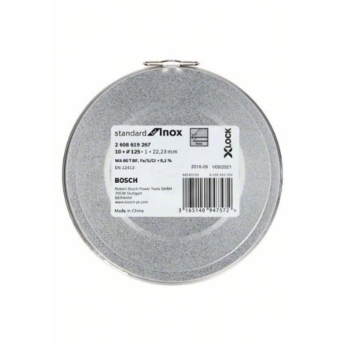 Die X-LOCK Trennscheibe Standard for Inox sorgt für zuverlässige Eigenschaften in Stahl. Die schmale Schneide der Scheibe sorgt für glatte Schnitte ohne großen Kraftaufwand. Zudem ist die Scheibe frei von Eisen, Schwefel und chlorierten Füllstoffen. Trennscheiben von Bosch erfüllen die höchsten Sicherheitsanforderungen wie EN 12413. Dank schlüssellosem X-LOCK System lassen sich die Trennscheiben schnell und bequem wechseln.