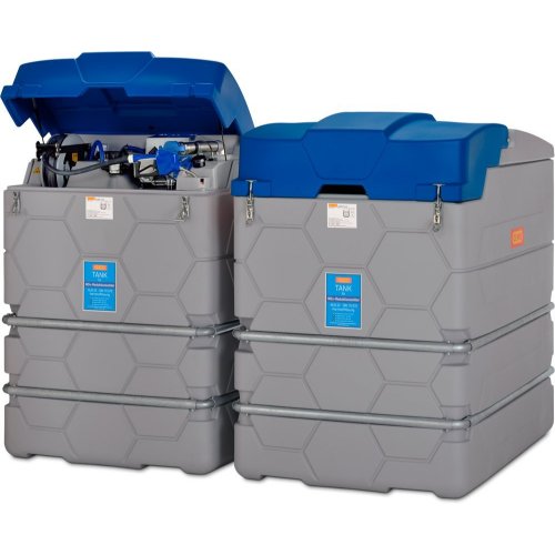 CUBE-Tank Outdoor Premium für AdBlue® / DEF / ARLA 32, 2.500 l, Zähler K24, Schlauchaufroller mi 8 m Befüllschlauch, Winterpaket (mit Heizlüfter 250 W für den Armaturenbereich), mit Klappdeckel, Außenmaße: 120 x 115 x 180 cm