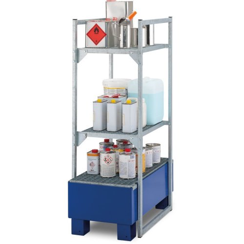 Cemo Fassregal 120 mit Gitterrostauflagen kpl., mit Stahl-Auffangwanne, 45 x 82 x 131 cm