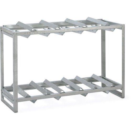 Fassregal für Gefahrstoffdepot aus Stahl, liegende Fasslagerung, verzinkte Ausführung, je Lagerebene entweder 2 x 200 l-Fässer oder 3 x 60 l-Fässern, Gesamtmaße 135 x 50 x 85 cm,