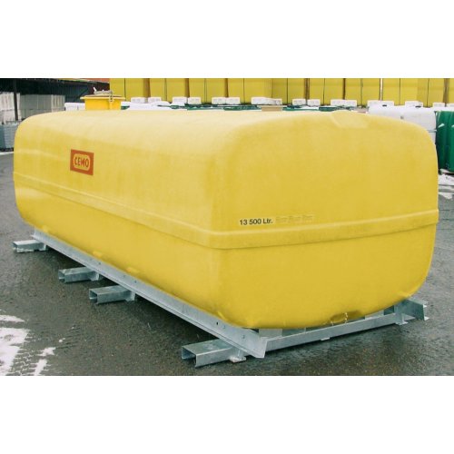 Fass, kofferförmig, aus glasfaserverstärktem Kunststoff GFK, Inhalt 13500 l Transportfass mit Schwallwänden, Dom Durchmesser 420 mm mit Klappdeckel, Maße inkl. Kufen: 506 x 220 x 195 cm