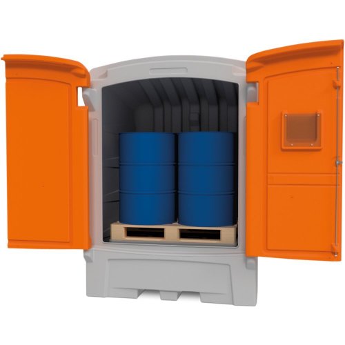 • ein Stahlgitterrost oder PE-Rost ist nicht erforderlich, kann beim PE-Gefahrstoffdepot 220/2 aber optional