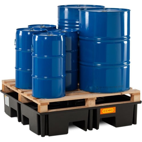 - beladene Paletten können mit dem Stapler oder Hochhubwagen direkt auf die Wanne gesetzt werden