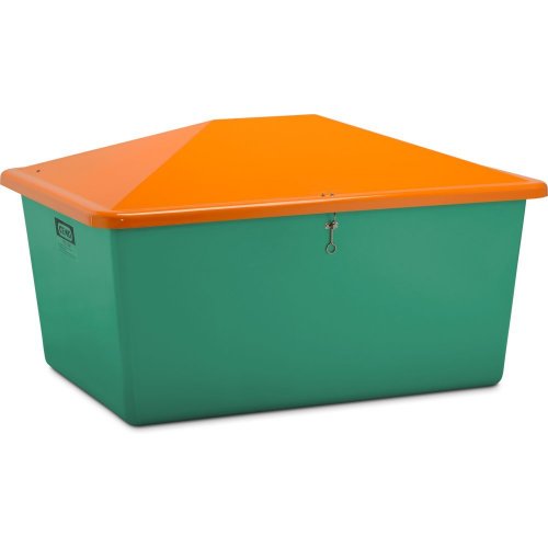 Streugutbehälter 1500 l, ohne Entnahmeöffnung, grün/orange, Maße: 184 x 143 x 104 cm