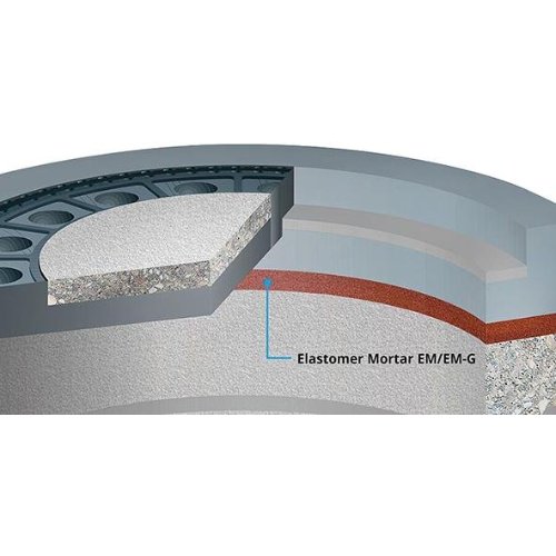 DENSOLASTIC® -EM besteht aus einem zweikomponentigen Material auf Polyurethanbasis und Fülleranteilen. Das Material ist in fließfähiger Ausführung (EM-G) oder als Spachtelmasse (EM) erhältlich. Der Elastomermörtel ist nach der Aushärtung hochstandfest und dauerhaft elastisch. Offizielle Untersuchungen unabhängiger Prüfinstitute haben die hervorragenden Materialeigenschaften des DENSOLASTIC® -EM nachgewiesen. Bei den Prüfungen wurde u.a. die dynamische Dauerbeanspruchung untersucht: DENSOLASTIC® -EM war dabei, im Gegensatz zu mineralischen Mörteln, auch nach über 150.000 Lastwechseln noch in einwandfreiem Zustand.