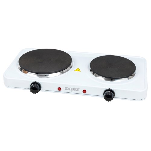 Doppelkochplatte BASIC, 2 Kochplatten Ø 185 und 155 mm, 2500 Watt. 2 Temperaturregler mit 5 Stufen. 2 Kontrollleuchten. Rutschfeste Standfüße. H 66 x B 470 x T 261 mm.