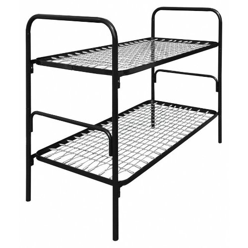 Etagenbett Viereckgeflecht 1900 x 900 mm, pulverbeschichtet in RAL 9005 tiefschwarz. Seitenteile komplett verschweißt. Stabiles Standrundrohr aus Stahl Ø 30 mm. Liegefläche aus Profilrohr als Einhängerahmen.