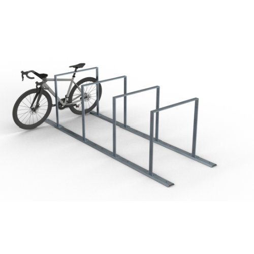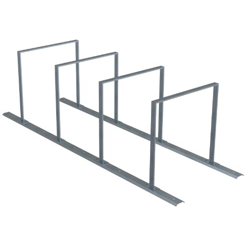 Die Reihenanlage für Fahrräder aus Stahlrohr 50 x 12 mm stellt vier Einstellplätze bereit und ist für die feste Bodenbefestigung ausgelegt. Ein Schienensystem nimmt die Anlehnbügel auf; die Montage erfolgt durch Aufschrauben. Die Aufschraubmontage stellt eine dauerhafte Verbindung mit dem Untergrund her. Die Anlage ist 800 mm hoch und 800 mm breit, der Radabstand beträgt 700 mm. Die feuerverzinkte Oberfläche schützt vor Korrosion und eignet sich für den dauerhaften Einsatz im Außenbereich. Anlehnbügel geben den Rädern Halt und ermöglichen das Anschließen am Rahmen. Die Anlage lässt sich entlang von Fassaden, in Eingangsbereichen oder auf ausgewiesenen Parkflächen platzieren. Die Konstruktion ist für die wiederkehrende Nutzung konzipiert und erfüllt die Anforderungen in Betrieben, Wohnanlagen sowie öffentlichen Einrichtungen. Das Schienensystem erleichtert eine genaue Ausrichtung bei der Installation und sorgt für eine klare Struktur der Stellplätze.