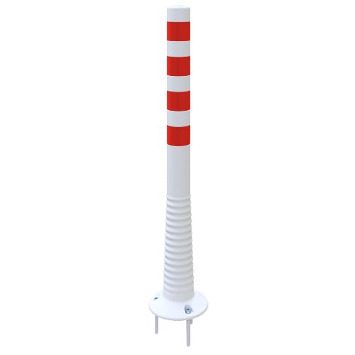 Der selbstaufrichtende Flexipfosten besteht aus weißem PUR und eignet sich für die dauerhafte Bodenmontage. Mit 1000 mm Höhe und einem zylindrischen Schaft von Ø 80 mm bleibt er gut erkennbar, ohne viel Stellfläche zu beanspruchen. Das Material verformt sich bei Anstoß elastisch; der Pfosten neigt sich und kehrt anschließend in seine Ausgangslage zurück. Vier umlaufende, rot reflektierende Streifen erhöhen die Sichtbarkeit bei Dunkelheit und unter Scheinwerferlicht und bieten eine 360°-Erkennung. Die helle Oberfläche unterstützt die Wahrnehmung am Tag. Die Befestigung erfolgt auf festem Untergrund; drei Schrauben und passende Dübel sind im Lieferumfang enthalten. Die Montage über drei Befestigungspunkte sorgt für eine sichere Verbindung zum Boden, vorausgesetzt, der Untergrund ist fachgerecht vorbereitet. Farbe, Maße und Ausführung ermöglichen eine klare optische Abgrenzung, ohne ein starres Hindernis zu bilden. Durch den schlanken Ø-80-mm-Querschnitt lässt sich der Pfosten platzsparend anordnen.