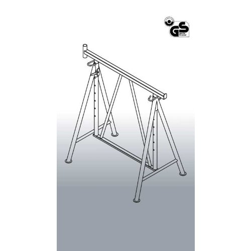 Schwenkbarer, absolut standfeste Rohrkonstruktion. Geringer Platzbedarf bei Lagerung, Höhenverstellung alle 100 mm, auch mit abklappbarem Rückengeländer lieferbar. Ab Modell-Nummer FE 1301.7 serienmäßig mit abklappbarem Rückengländer.
