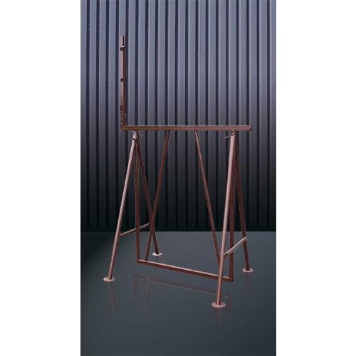 Schwenkbarer, absolut standfeste Rohrkonstruktion. Geringer Platzbedarf bei Lagerung, Höhenverstellung alle 100 mm, auch mit abklappbarem Rückengeländer lieferbar. Ab Modell-Nummer FE 1301.7 serienmäßig mit abklappbarem Rückengländer.