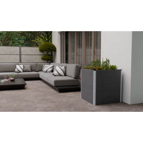 Ein Hochbeet im Garten und darin ganz komfortabel das eigene Gemüse ziehen – davon träumen viele. Wir machen die Umsetzung jetzt ganz leicht: mit unseren GroJaSolid Hochbeeten. Das hochwertige, witterungsbeständige Gehäuse mit moderner Rhombus-Optik ist ruckzuck aufgestellt. Seine co-extrudierten BPC-Füllungen sind in Steingrau gehalten und werden durch Aluminiumprofile verbunden. Das Hochbeet hat eine rückenfreundliche Höhe von 79 cm. Die Größe von 150 x 70 cm bietet genug Platz für das Lieblingsgemüse – oder aber, ganz nach persönlicher Vorliebe, für ein Arrangement blühender Hochbeetpflanzen.