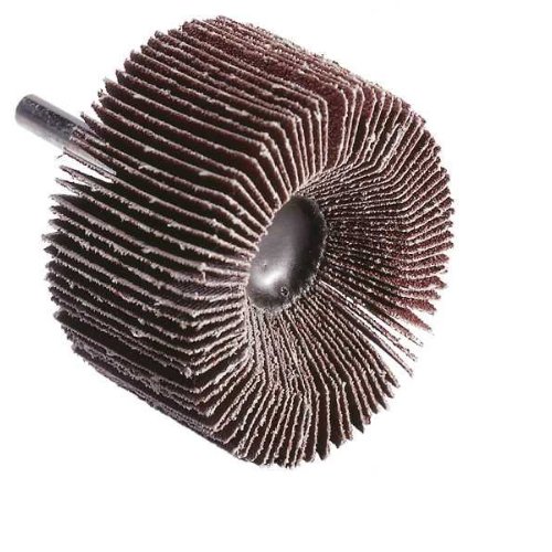 Schleifmop mit Schaft für handgeführte Maschinen zur Bearbeitung von profilierten Werkstücken, Innenflächen, engen und schwer erreichbaren Stellen besonders geeignet für radialen und stirnseitigen Einsatz.
