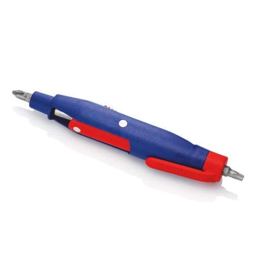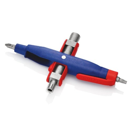 Transportfreundlicher Schaltschrank-Schlüssel in Kugelschreiberform mit Befestigungsclip zur sicheren Aufbewahrung. Durch Ausschwenken des Schlüsselträgers können vier verschiedene Schlüsselprofile nutzbar gemacht werden. Für Schaltschränke, Absperrsysteme der Gas-, Wasser- und Elektrizitätsversorgung. Für technische Anlagen in Gebäuden wie Klima- und Belüftungsanlagen, Absperrventile, Netzschalttafeln usw. Universelle 1/4"-Bitaufnahme für handelsübliche Bits (Dauermagnet zur Fixierung). Zusätzliche Bitaufnahme für 1/4"-Bits in einem Schlüsselprofil. Mit 2 Wendebits: Kreuzschlitz PH / Schlitz 7,0 x 1,2 mm und TX20 / TX25. Werkzeugkörper: Kunststoff, glasfaserverstärkt. Schlüsselprofile: Zink-Druckguss.
