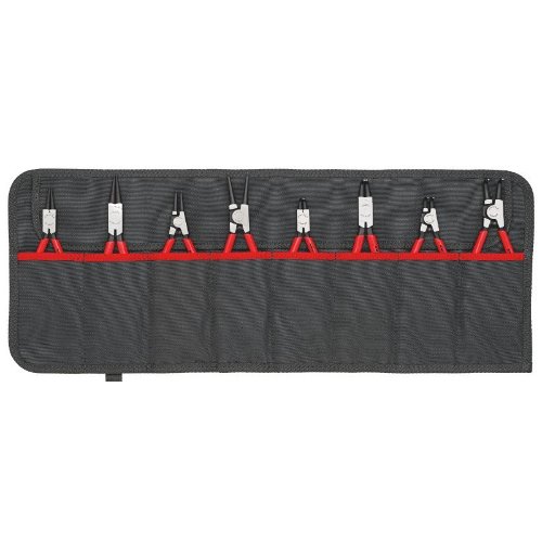 Rolltasche aus strapazierfähigem Polyester-Gewebe. Mit praktischem, verstellbarem Schnellverschluss. Acht gängige Sicherungsringzangen für Innen- und Außenringe. Abmessungen, geöffnet (L x H): 610 x 240 mm.