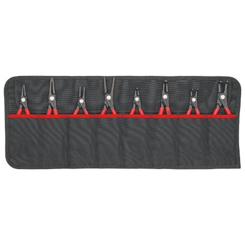 Rolltasche aus strapazierfähigem Polyester-Gewebe. Mit praktischem, verstellbarem Schnellverschluss. Acht gängige Präzisions-Sicherungsringzangen für höchste Anforderungen. Abmessungen, geöffnet (L x H): 610 x 240 mm.