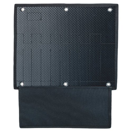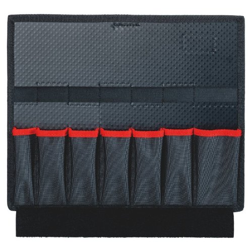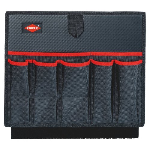 Zweiteilige Werkzeugtafel aus strapazierfähigem Polyester-Gewebe. Werkzeugtafeln sind über Klett miteinander verbunden. Obere Werkzeugtafel (Deckelteil) mit 10 Taschen und 10 elastischen Schlaufen. Die obere Werkzeugtafel wird mit dem Deckel der KNIPEX L-BOXX® verschraubt. Untere Werkzeugtafel (Bodenteil) oben mit 7 Taschen und Lasche zum Aufhängen der Werkzeugtafel. Dient auch zum Anheben oder Aufstellen in der KNIPEX L-BOXX®. Bodenteil unten mit 7 Taschen und 7 elastischen Schlaufen. Untere Werkzeugtafel kann bei Bedarf aus der KNIPEX L-BOXX® entnommen werden. Abmessungen (B x H x T): 375 x 55 x 310 mm.