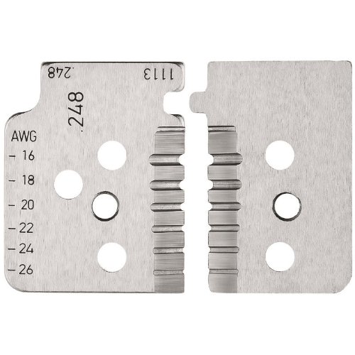 Formschlüssiges Abisolieren auch von schwer zu entfernenden Isolierwerkstoffen aus PTFE, Silikon, Radox®, Kapton® und Gummi. Auch mehrlagig. Ein zweites Messerpaar hält die verbleibende Isolierung zuverlässig fest. Genau auf den jeweiligen Leiterquerschnitt abgestimmte, auswechselbare Formmesser. Mit einstellbarem Längenanschlag für gleiche Abisolierlängen bei Serienarbeit. Zangenkörper: Stahl. Messer: Spezial-Werkzeugstahl, ölgehärtet.