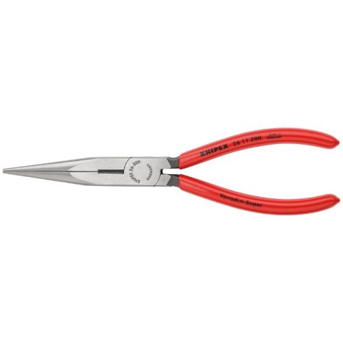 Elastische Spitzen: formstabil auch bei Verwindung. Verwindungstolerante, elastische Präzisionsspitzen. Flach-runde, lange, spitz zulaufende Backen. Mit Schneiden für weichen, mittelharten und harten Draht. Schneiden zusätzlich induktiv gehärtet, Schneidenhärte ca. 61 HRC. Vanadin-Elektrostahl, geschmiedet, mehrstufig ölgehärtet.