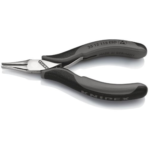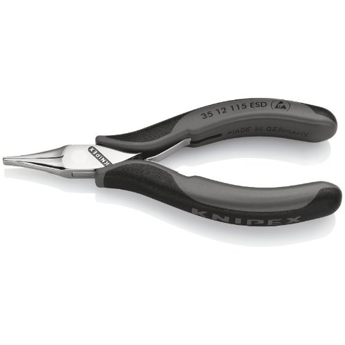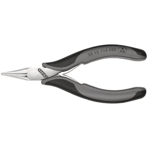 Präzisionszangen für feine Montagearbeiten, z. B. in Elektronik und Feinmechanik. Zum Greifen, Halten und Biegen. Griffe elektrisch ableitend – dissipativ. Durchgestecktes Präzisionsgelenk. Glatt geschliffene Greifflächen. Kanten sorgfältig entgratet. Reibungsarme Doppelfeder für ein sanftes und gleichmäßiges Öffnen. Die Spiegelpolitur bietet in Verbindung mit einem feinen Ölfilm einen guten Rostschutz – keine Störungen im Schaltkreis durch abblätternde Chromteile. Griffe mit zweifarbigen Mehrkomponenten-Hüllen schwarz/grau. Kugellager-Chromstahl.