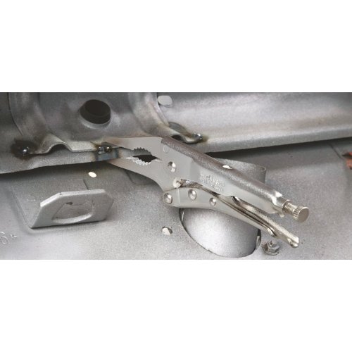 Halten Rund-, Profil- und Flachmaterial sicher fest. Hoch belastbar. Mit Stellschraube und Lösehebel. Einhandbedienung. Hoher Spanndruck durch Kniehebelübersetzung. Zangenkörper: Walzstahl, hochfest. Greifbacken: Chrom-Vanadin-Elektrostahl, geschmiedet.
