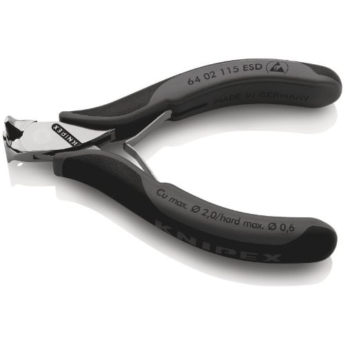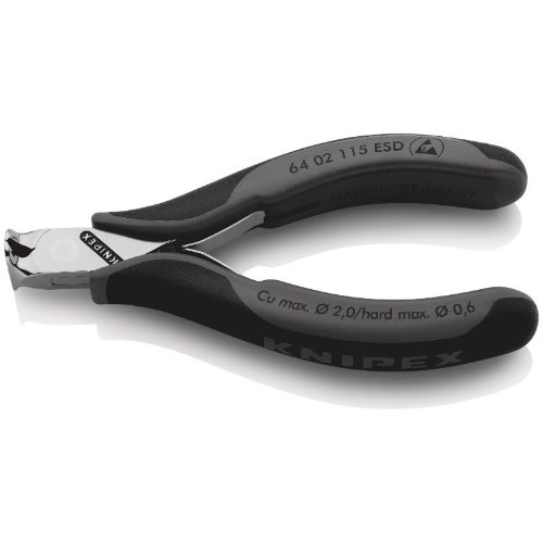 Präzisionszangen für feinste Schneidarbeiten, z. B. in Elektronik und Feinmechanik. Griffe elektrisch ableitend – dissipativ. Durchgestecktes Präzisionsgelenk. Reibungsarme Doppelfeder für ein sanftes und gleichmäßiges Öffnen. Die Spiegelpolitur bietet in Verbindung mit einem feinen Ölfilm einen guten Rostschutz – keine Störungen im Schaltkreis durch abblätternde Chromteile. Schneiden zusätzlich induktiv gehärtet, Schneidenhärte min. 56 HRC. Griffe mit zweifarbigen Mehrkomponenten-Hüllen schwarz/grau. Spezial-Werkzeugstahl in Sondergüte, geschmiedet, ölgehärtet.
