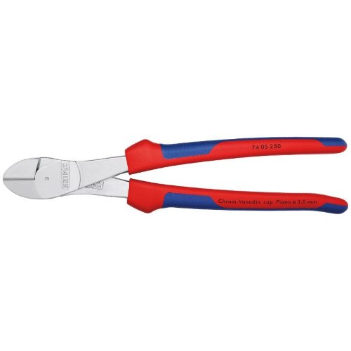 Für härteste, dauerhafte Beanspruchung. Hohe Schneidleistung bei geringem Kraftaufwand durch optimale Abstimmung von Schneidenwinkel und Übersetzungsverhältnis. Präzisionsschneiden zusätzlich induktiv gehärtet, (Schneidenhärte ca. 64 HRC) für alle Drahtsorten einschließlich Pianodraht. Chrom-Vanadin-Hochleistungsstahl, geschmiedet, mehrstufig ölgehärtet. Der 250 mm lange Seitenschneider ist geeignet für Cu-Leiter bis 16 mm² und Al-Leiter bis 35 mm².