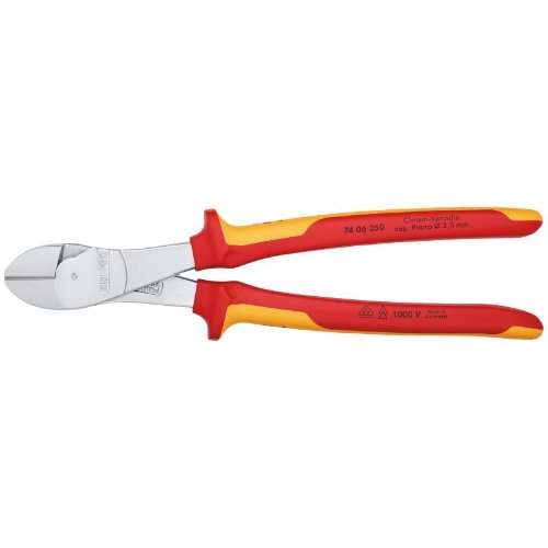 Für härteste, dauerhafte Beanspruchung. Hohe Schneidleistung bei geringem Kraftaufwand durch optimale Abstimmung von Schneidenwinkel und Übersetzungsverhältnis. Präzisionsschneiden zusätzlich induktiv gehärtet, (Schneidenhärte ca. 64 HRC) für alle Drahtsorten einschließlich Pianodraht. Chrom-Vanadin-Hochleistungsstahl, geschmiedet, mehrstufig ölgehärtet. Der 250 mm lange Seitenschneider ist geeignet für Cu-Leiter bis 16 mm² und Al-Leiter bis 35 mm².