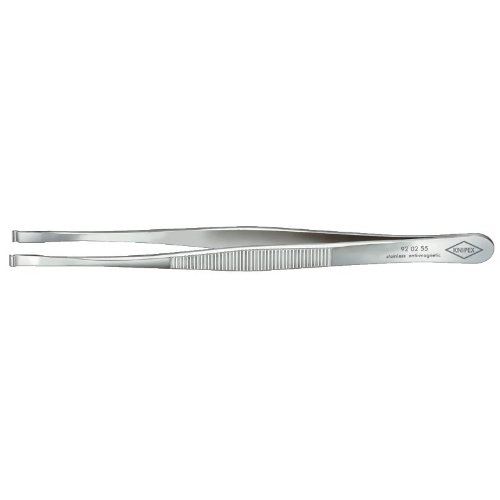 Greifflächen glatt. Blendfrei mattiert. Greifbacken 3,5 mm breit, für zylindrische Bauteile mit Ø 0,8 mm. Geriffelte Griffe. Rostfrei, antimagnetisch und säurefest.