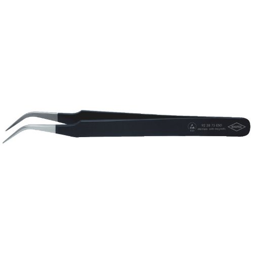 Chrom-/ Nickel-Stahl: rostfrei, antimagnetisch (18/10), sehr gängige Elektronik-Qualität. ESD-Beschichtung: blendfrei schwarz, mit einem Oberflächenwiderstand von ca. 10⁵ Ohm. Spitzen blendfrei gebürstet. Greifflächen mattiert für optimalen Halt. Sichelförmige Spitzen. Greifflächen glatt. Chrom-Nickel-Stahl, rostfrei, antimagnetisch.