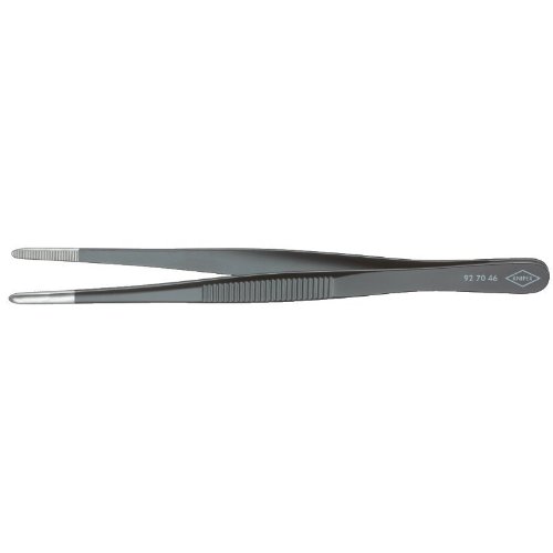 Universell verwendbar. Gerade Form. Breite, runde Spitzen. Geriffelte Griffe. Runde Spitzen, ca. 3,5 mm breit. Greifflächen fein gezahnt. Blendfrei schwarz lackiert.