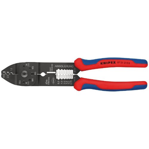 Zum Kabelschneiden, Abisolieren von Drähten und Crimpen von isolierten und unisolierten Kabelschuhen und Steckverbindern und offenen Steckverbindern. Mit Gewindelöchern zum Abschneiden von Cu- oder Ms-Gewindestiften mit M 2,6. M 3. M 3,5. M 4 und M 5. Geschraubtes Gelenk für eine hohe Stabilität und gleichmäßigen Lauf. Spezialstahl, hochfest.