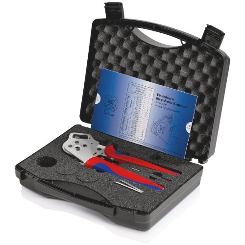 Zum Verpressen von gedrehten Kontakten. Vierdornpressung für hochwertigste Crimpverbindungen. Lehrdorn zur Kontrolle der Grundeinstellung. Gleichbleibend hohe Crimpqualität durch Zwangssperre (entriegelbar). Kraftverstärkung durch höchst effektive Hebelübersetzung für ermüdungsarmes Arbeiten. Hoher Bedienkomfort durch handliche Bauform. Crimpmaß in Schritten von 0,01 mm einstellbar. Mit digitaler Anzeige der eingestellten Crimpmaße und Möglichkeit der Re-Kalibrierung über RESET-Funktion mit elektronischer Verschleißüberwachung. Einstellung in mm, inch oder vergleichbare Selectorpositionen nach MIL. Mit Tabelle zur Ermittlung der Einstellwerte. Zange im Kunststoffkoffer mit Schaumstoffeinlage und Positionierhilfe zur Aufnahme der Kontakte. Chrom-Vanadin-Elektrostahl in Sondergüte, ölgehärtet.