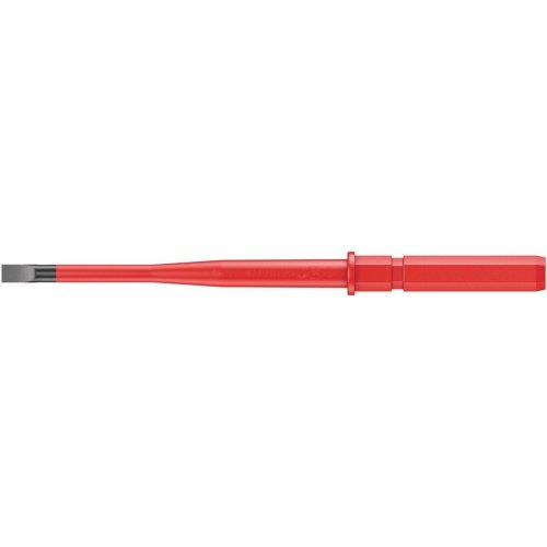Wechselklinge mit reduziertem Klingendurchmesser mit integrierter Schutzisolation, so können tiefliegende Schraub- und Federelemente erreicht und betätigt werden. Stückgeprüfte Werkzeuge gem. IEC 60900. Stückprüfung im Wasserbad bei 10.000 V für sicheres Arbeiten bei der zugelassenen Spannung von 1.000 V.