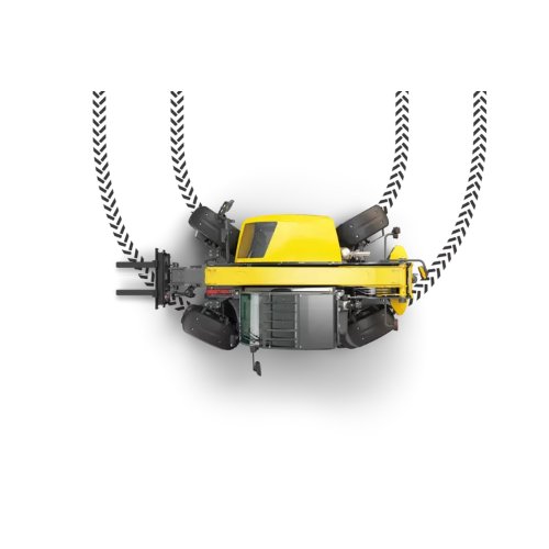 - Optimierte Energieeffizienz: Zwei separate Elektromotoren für Fahrantrieb und Arbeitshydraulik.