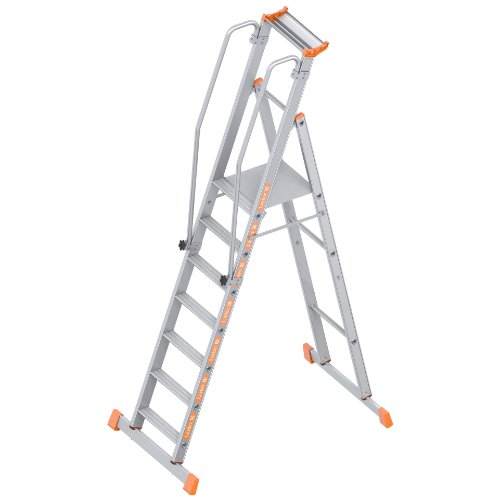 Aluminiumleitern von Layher stehen für Robustheit und Langlebigkeit bei geringem Gewicht und finden Anwendung in allen Gewerken. Die Stufen sind gefertigt aus hochfesten, geschlossenen Strangprofilen ohne Längsschweißnaht mit hoher Beanspruchbarkeit. Sie sind in den Holm 4-fach verpresst. Für ein hohes Maß an Trittsicherheit sorgt die strak geriffelte Trittfläche der Stufen. Zusätzliche Aussteifer am Holmende sorgen für ein Übertreffen der Werte der DIN EN 131.