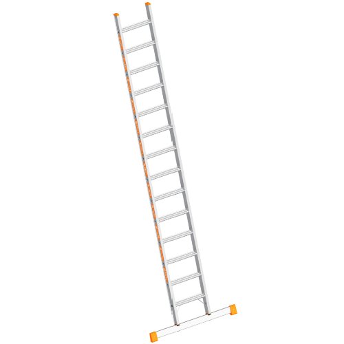 Aluminiumleitern von Layher stehen für Robustheit und Langlebigkeit bei geringem Gewicht und finden Anwendung in allen Gewerken. Die Stufen sind gefertigt aus hochfesten, geschlossenen Strangprofilen ohne Längsschweißnaht mit hoher Beanspruchbarkeit. Sie sind in den Holm 4-fach verpresst. Für ein hohes Maß an Trittsicherheit sorgt die strak geriffelte Trittfläche der Stufen. Zusätzliche Aussteifer am Holmende sorgen für ein Übertreffen der Werte der DIN EN 131.