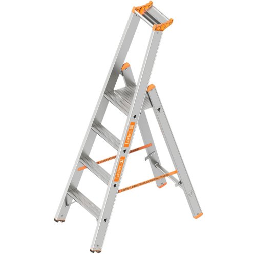 Aluminiumleitern von Layher stehen für Robustheit und Langlebigkeit bei geringem Gewicht und finden Anwendung in allen Gewerken. Die Stufen sind gefertigt aus hochfesten, geschlossenen Strangprofilen ohne Längsschweißnaht mit hoher Beanspruchbarkeit. Sie sind in den Holm 4-fach verpresst. Für ein hohes Maß an Trittsicherheit sorgt die strak geriffelte Trittfläche der Stufen. Zusätzliche Aussteifer am Holmende sorgen für ein Übertreffen der Werte der DIN EN 131.