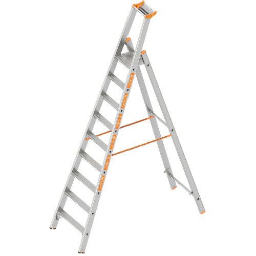 Aluminiumleitern von Layher stehen für Robustheit und Langlebigkeit bei geringem Gewicht und finden Anwendung in allen Gewerken. Die Stufen sind gefertigt aus hochfesten, geschlossenen Strangprofilen ohne Längsschweißnaht mit hoher Beanspruchbarkeit. Sie sind in den Holm 4-fach verpresst. Für ein hohes Maß an Trittsicherheit sorgt die strak geriffelte Trittfläche der Stufen. Zusätzliche Aussteifer am Holmende sorgen für ein Übertreffen der Werte der DIN EN 131.